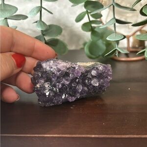 Enhance your space with this stunning amethyst crystal. Its deep purple hue adds a touch of elegance to any room.