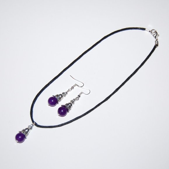 Amethyst Necklace and Earring Set,Purple Gemstone Necklace and Earrings
