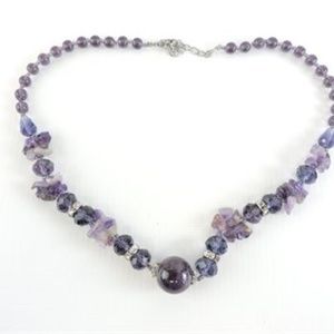 Elegant and timeless, this necklace features purple amethyst gemstones in various cuts and luster, and is further enhanced with sparkling rhinestones. Perfect formal occasion. This piece offers everything you need to look just fab!