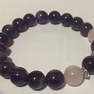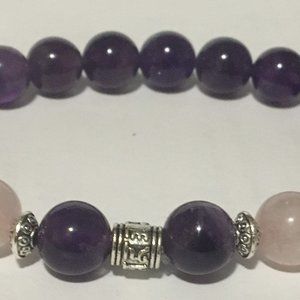 Natural Amethyst and Rose Quartz Gemstone Bracelet