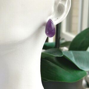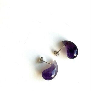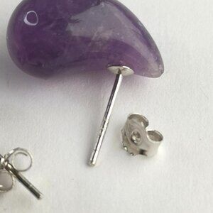 Amethyst Teardrop Comma Sterling Silver Stud Earrings 🆕