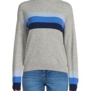 Amicale's Women's Cashmere Crewneck With Stripe,Blue - Blue / XL