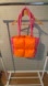 2024 tote bag by Amika. Puffer style in bright orange and pink with padded straps and zipper closure. A couple of tiny holes as shown in last 2 photos. 16” wide x 11” high.