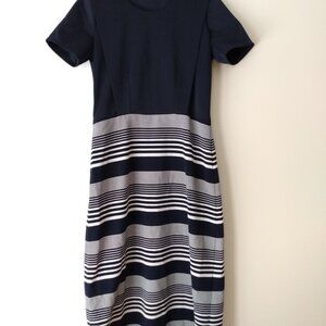 Amish Mennonite Cape Dress - Navy Blue with Striped Bottom