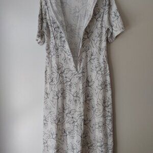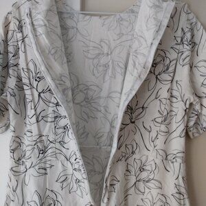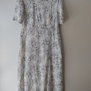 Amish Mennonite Cape Dress 39"B 34"W White Black Floral Linen-Like