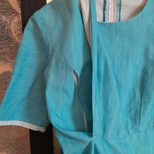 Amish Mennonite dress in a turquoise denim jean fabric. Handmade.