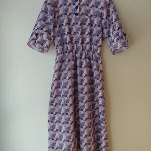 Amish Mennonite NO Cape Dress - Vintage Handmade Purple Floral