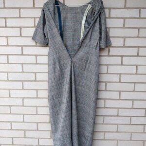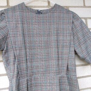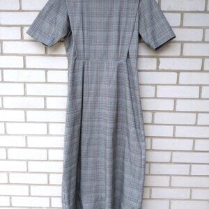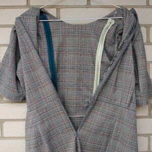 Amish Mennonite Nursing Cape Dress 36" Bust 31" Waist Handmade Black Blue Plaid