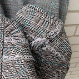 For some reason on my computer screen it looks like the dress fabric has the color yellow in the plaid. There is NO yellow, the colors are only black, white and blue.
