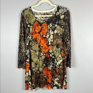 Amma Vibrant Orange and Brown Relaxed Graphic Tunic Size Medium