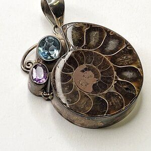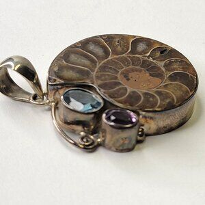 Ammonite Fossil Pendant Vintage Style 925 Sterling Silver