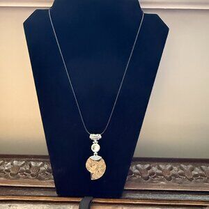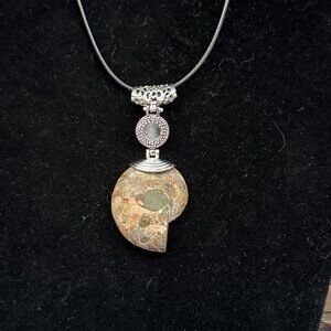 Ammonite Fossil Shell Pendant Necklace Leather Strap