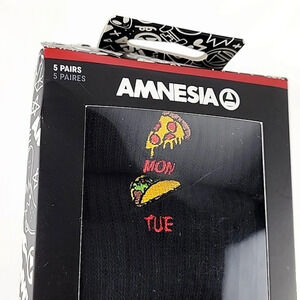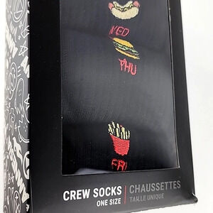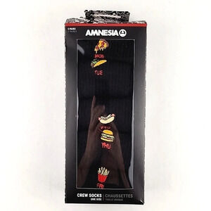 New with tags, Amnesia men's 5 pairs fast food graphic black crew socks. One size.