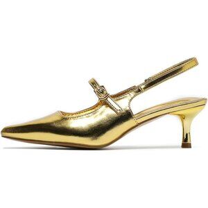Amoji Women's Gold Closed Pointed Toe Kitten Slingback Low Heel Pumps For Party