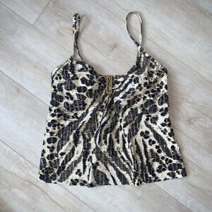 Amoressa Tankini Top Women's Size 6 US/14 US Animal Print Gold Underwire NWOT