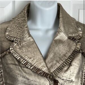 Amorimiei Milan Distressed Gold Leather Blazer with ruffle details, Size 10