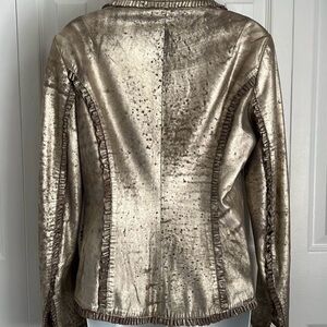 Beautiful Amorimiei Milan Distressed Gold Leather Jacket/Blazer Size 10 (see measurements). Make a statement in this unique ruffled leather jacket. Very flattering on.