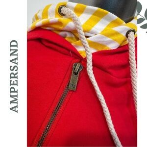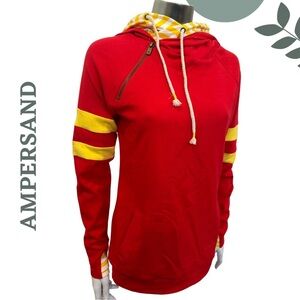 Ampersand Ave Doublehood Hoodie | Red & Yellow Striped Sleeves | Bright Size XS