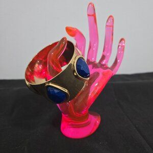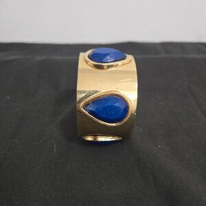 Gold tone, wide cuff bangle.