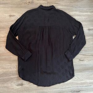Chic black shirt with unique textured circles. Features a classic collar and button-up design. Perfect for any occasion.