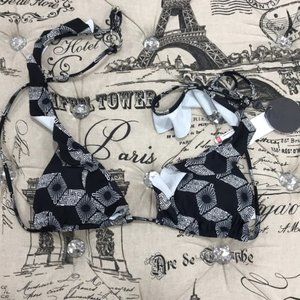 Prepare for some fun in the sun in this printed ruffle strap bikini top.