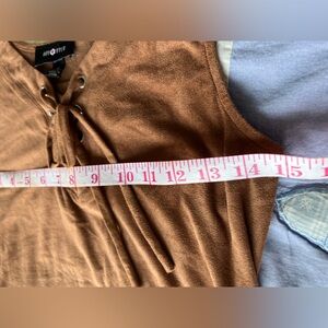 Amy Byer Brown Suede-Look Lace Hp Front Western Cowboy Boho Tank Top