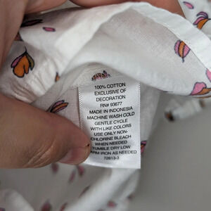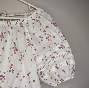 Ana Flowy White 100% Cotton Pilgrim Top Floral Red Detail Sleeve Medium