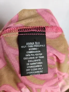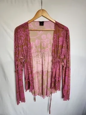 Ana Sui Pink And Tan Ruffled Mesh Open Top With Drawstring Size Small