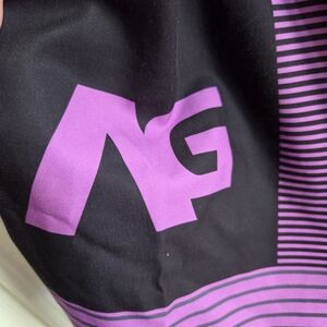 Stylish board shorts with purple and black stripes. Perfect for beach outings. Inseam 9" Rise 11" Waist 34"