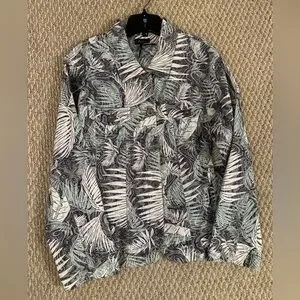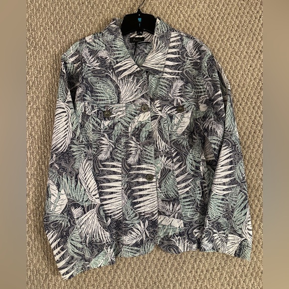 Elegant jacket with intricate patterns. Cotton blend jacket. Blue, green and white Pet friendly home