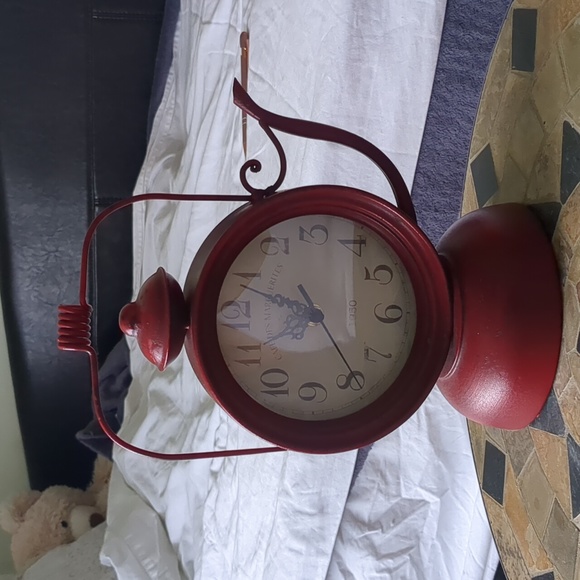 vintage look teapot clock in red that can be placed in the kitchen or in your little nook