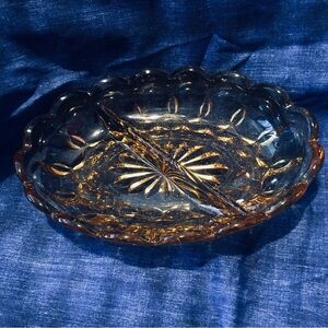 Anchor Hocking Amber Glass Divided Dish Fairfield pattern