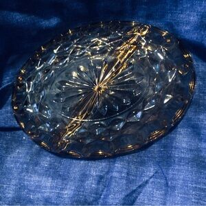 Elegant amber glass dish with a divided design. Perfect for serving snacks or appetizers. Features a beautiful Fairfield pattern by Anchor Hocking, lovely scalloped edges and the honey amber is so pretty. Used but in excellent shape, please check pics over.