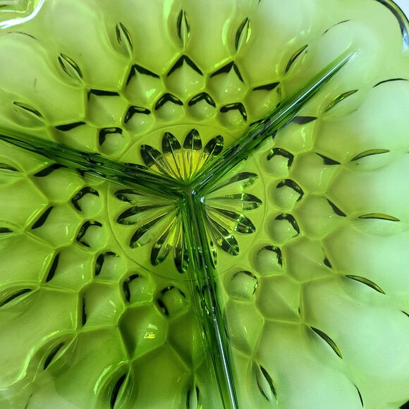 Anchor Hocking Avocado Green Depression Glass divided 3 parts plate dish.