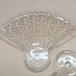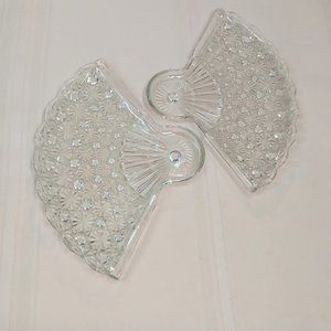 Anchor Hocking Daisy And Buttons Clear Glass Fans, Vintage Glass Plates