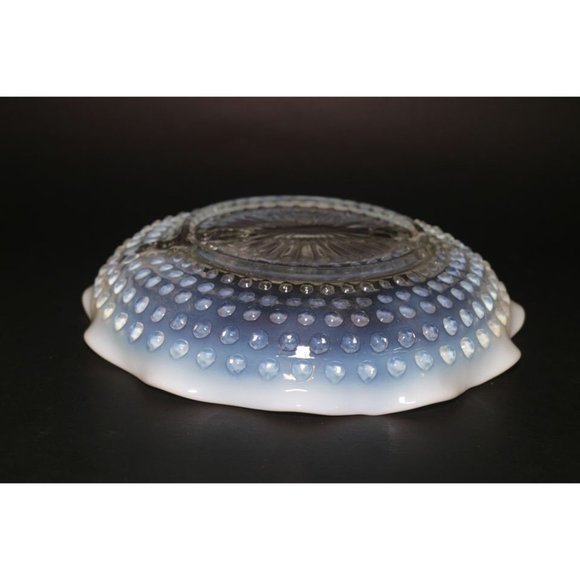 Anchor Hocking Fenton Style Hobnail Opalescent Moonstone Divided Glass Dish