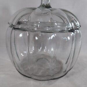 Anchor Hocking Glass Pumpkin Jar Lid Clear Fall Halloween 8" 2.2 qt Candy Treat