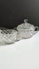 Clear glass cream and covered sugar bowl set by Anchor Hocking. Oval shape will all over quilted diamond pattern.