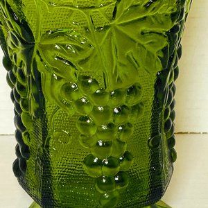 Anchor Hocking Vintage Green Glass Vase Embossed Grapes