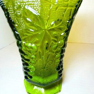 Anchor Hocking Vintage Green Glass Vase with Embossed Grapes