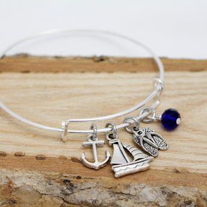 Anchor, Sailboat & Flip Flops Adjustable Charm Bangle - Handcrafted