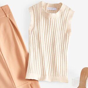 And Now This Women's Size Small Light Beige Ribbed Sleeveless Sweater Tank NWT