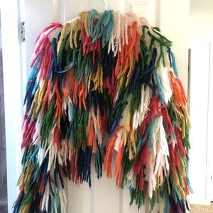 This is hand knit. Colour placement is individual to each jacket - no two are the same.