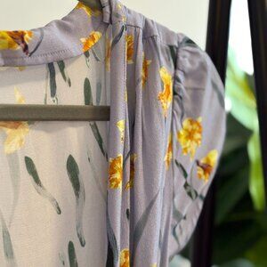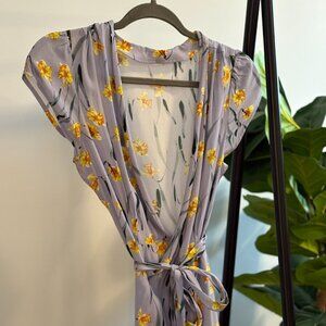 Andjela Stella Blue Wrap Maxi Dress with floral pattern.