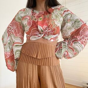 The BEHATI cropped top is a best seller for many reasons. Featuring the signature bubble sleeves and flattering front twist detail, this top will make you look and feel like the royalty that you are. Designed in a plush silk-feel fabric, this top creates a look that is inspired by your traveler's style.