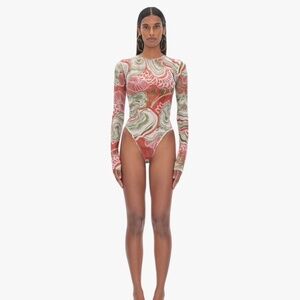 The Elle long sleeve mesh leotard with back neck zipper and crotch snaps fits like a second skin. Designed in a soft, lightweight, semi-sheer mesh the Elle leotard lets you layer creatively. Confidently wear it as a top underneath your favorite bottoms or wear as it beach layer over your favorite bikini.
