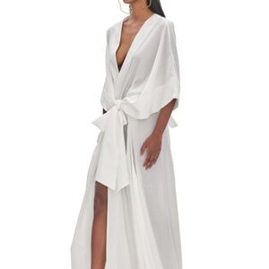The comfortable and loose GAMBA robe is your effortlessly chic go-to summer robe. Whether you are lounging poolside or at home, this cotton kimono-style robe features extra long ties that can be worn in different ways for a look that is both timeless and versatile. It also features decorative bow ties, center back slit, open front and wide sleeve hem.