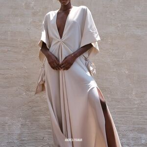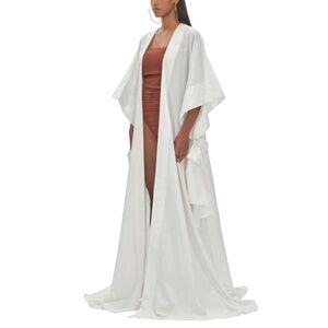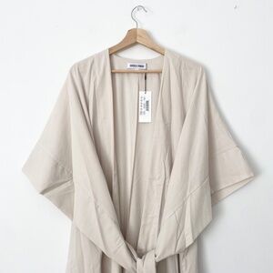 The comfortable and loose GAMBA robe is your effortlessly chic go-to summer robe. Whether you are lounging poolside or at home, this cotton kimono-style robe features extra long ties that can be worn in different ways for a look that is both timeless and versatile. It also features decorative bow ties, center back slit, open front and wide sleeve hem.