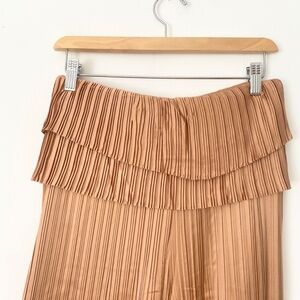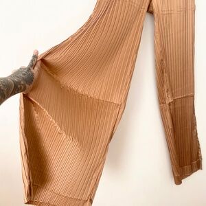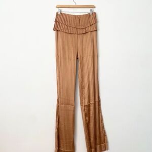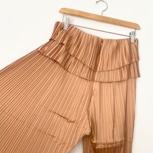 The high-waisted LINEA pants with back invisible zipper are those statement pants you can repeatedly count on. Designed with Andrea Iyamah's signature pleated fabric, these pants feature a flattering 2- layer peplum and a comfortable wide leg. This piece mesmerizingly moves with you with each step as you float about your day.