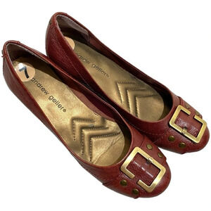 Andrew Geller NWOT Size 7 Reddish Brown with antiques Gold Buckle WEDGE Heel 2.5